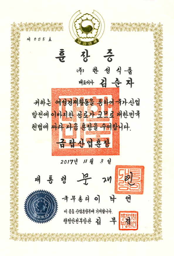 금탑산업훈장 수훈 (2017년 11월 3일)
