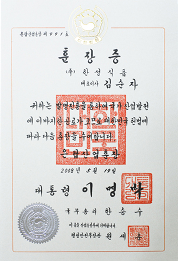 은탑산업훈장 수훈 (2008년 5월 19일)