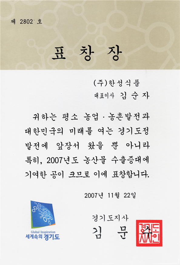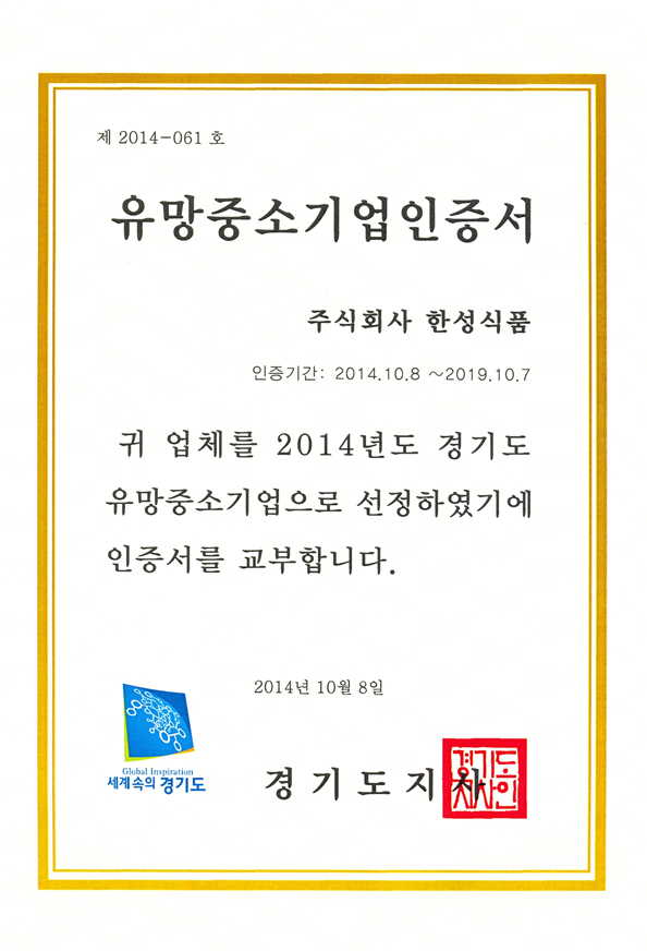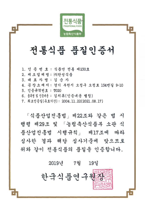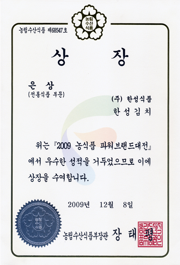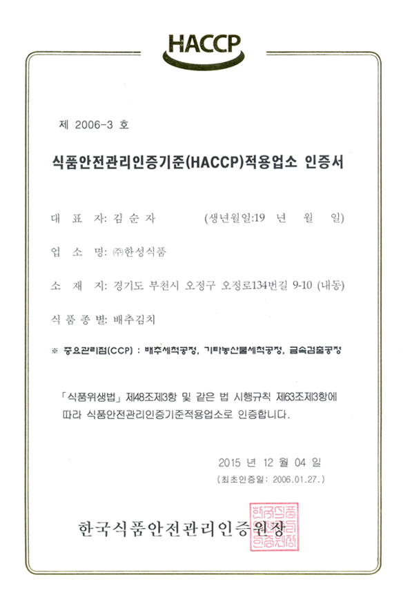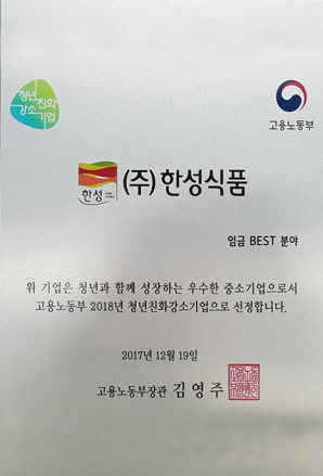 한성식품은 끊임없이 노력하고 연구하고 있습니다. HACCP과 ISO 22000, 할랄 인증 등 각종 품질 인증과 시상내역들을 소개합니다.